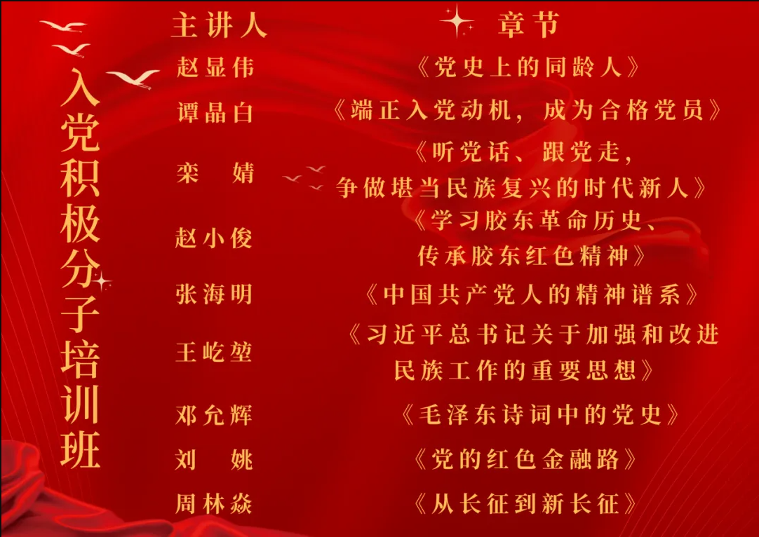 本次培训班旨在引导广大青年学生以党的创新理论为指引,统一思想、统一意志、统一行动,夯实听党话、跟党走的政治基石,筑牢理想信念之魂。通过系统学习,加强党性修养,高扬爱国主义旗帜,为早日成为一名合格的共产党员奠定坚实基础。