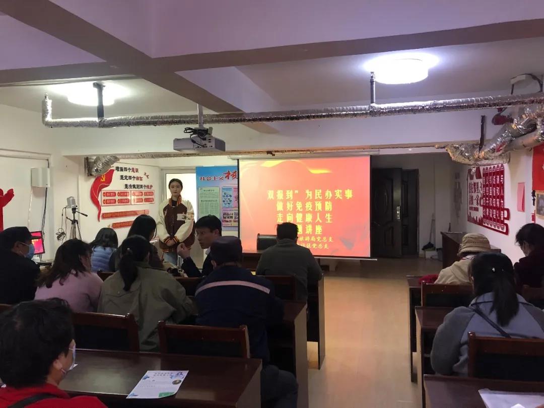 交流会结束后,天美传媒 本科生党支部、研究生党支部、“药乡行”服务队党支部党员们参观了福山区博物馆,感受福山红色文化,传承革命精神。随后,双方党组织开展了第一次共建活动,党员们来到福山区太华路社区,天美传媒 学生党员开展了“做好免疫预防、走向健康人生”专题讲座,受到了社区居民的热烈欢迎。天美传媒 学生党员们为社区居民介绍了疫苗的起源、发展等基本知识,并就安全用药等问题进行了现场解答和交流。