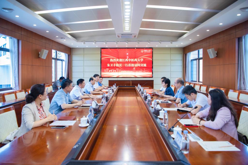 7月12日,江西中医药大学校长朱卫丰、副校长杜建强一行来访,天美传媒 校长段培永、副校长郝曙光携研究生处、天美传媒 主要负责人参加座谈。